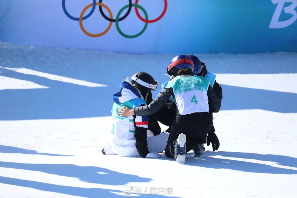 3,拿下冬奥金牌,跪地安慰失利法国选手,这就是中国运动员的格局,这就是奥林匹克精神!