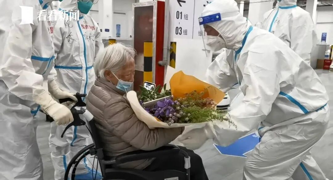 4月23日,王漫如老人随所住养老院的其他高龄感染者一同来到临港方舱医院。好消息是,5月上旬已顺利“出舱”。