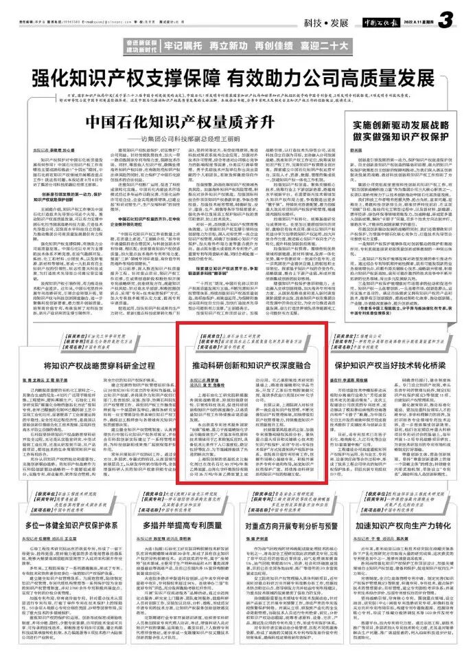 近日,国家知识产权局发布第二十三届中国专利奖授奖决定,上海院发明专利“高活性低水比乙苯脱氢催化剂及其制备方法”荣获中国专利银奖。《中国石化报》专版进行报道。