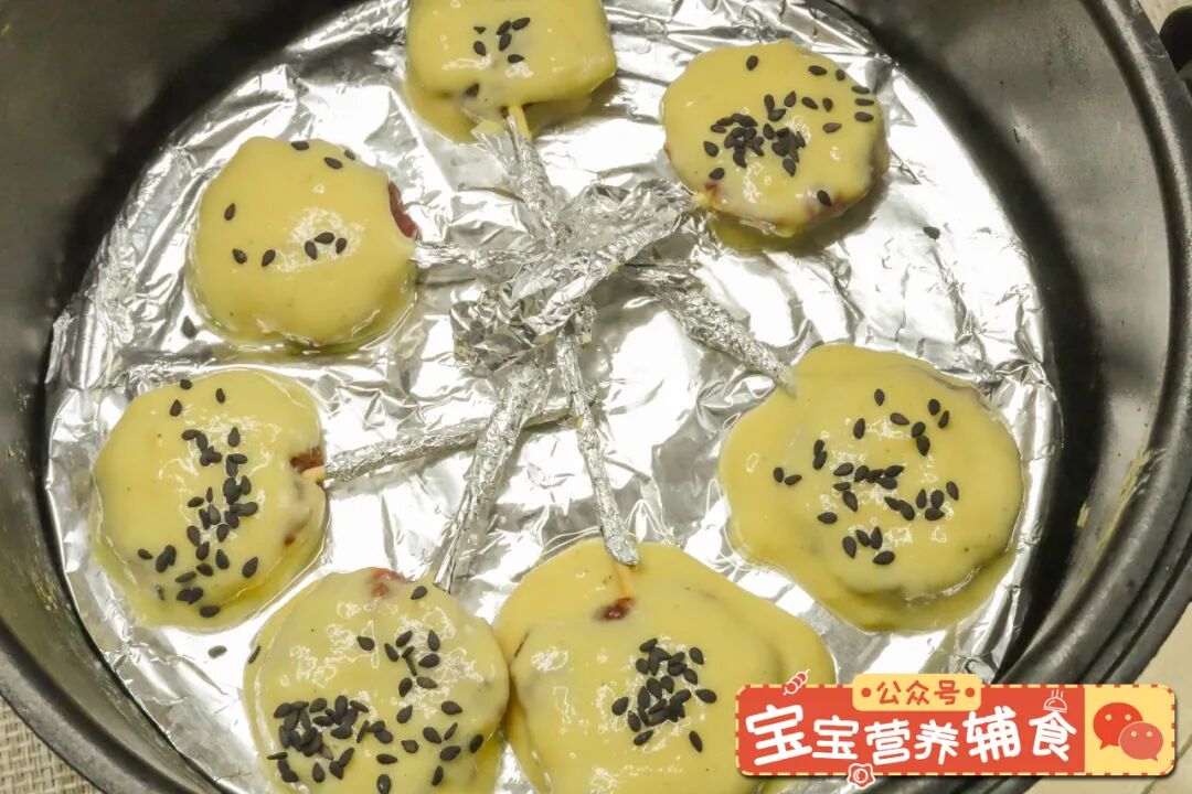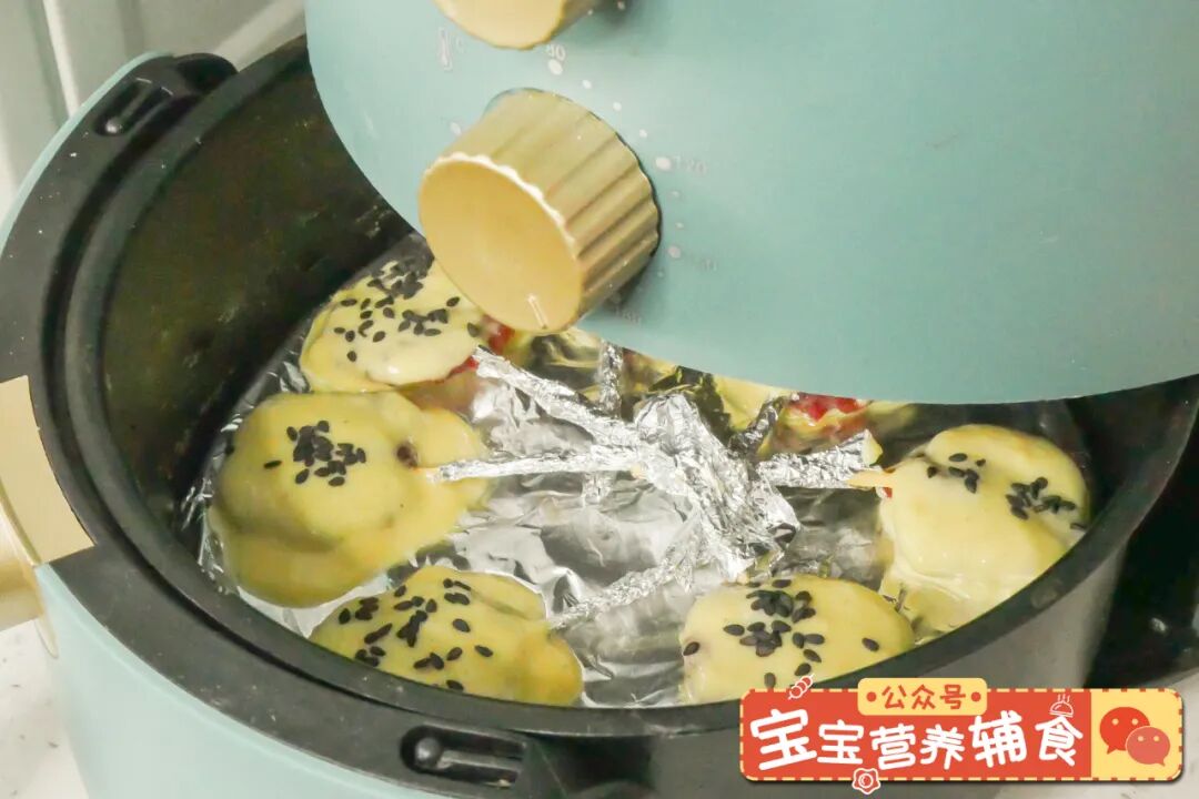如果单纯的吃肉肉不能满足宝宝,可以像我这样裹上点面糊,往空气炸锅一放,撒点芝麻。