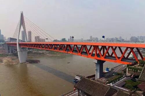 两江大桥也是邓文中的作品,东水门和千厮门两座大桥,连接江北城、渝中半岛和南滨路。两座大桥的主塔都是很有个性的天梭造型,高180余米。