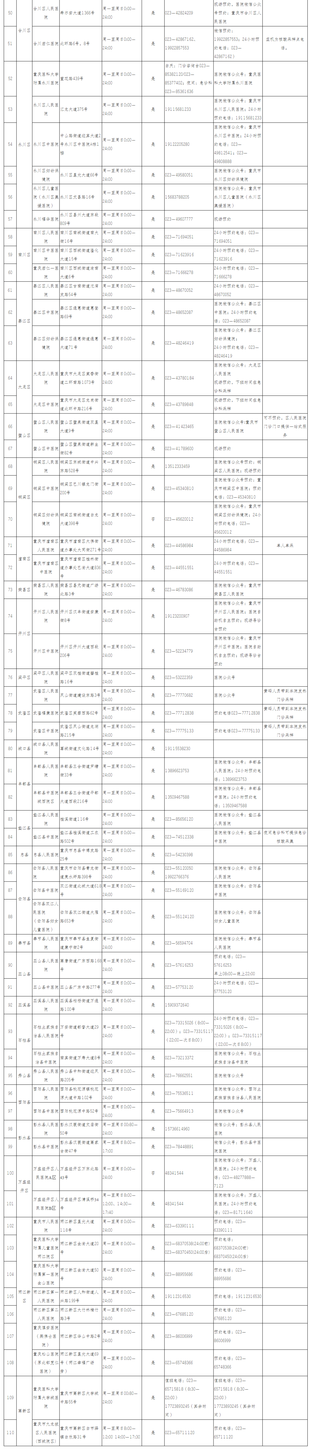 昨(3)日,重庆市卫生健康委网站发布重庆市24小时核酸检测服务医疗机构名单——2022年8月版,具体如下↓↓↓