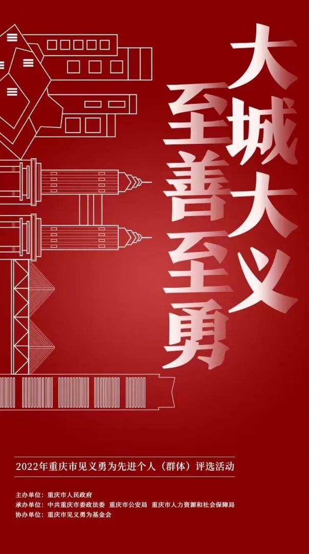在巴渝大地,凡人善举频频涌现。即日起,由重庆市人民政府主办,中共重庆市委政法委员会、重庆市公安局、重庆市人力资源和社会保障局承办,重庆市见义勇为基金会协办的“2022重庆市见义勇为先进个人(群体)评选活动”正式启动。