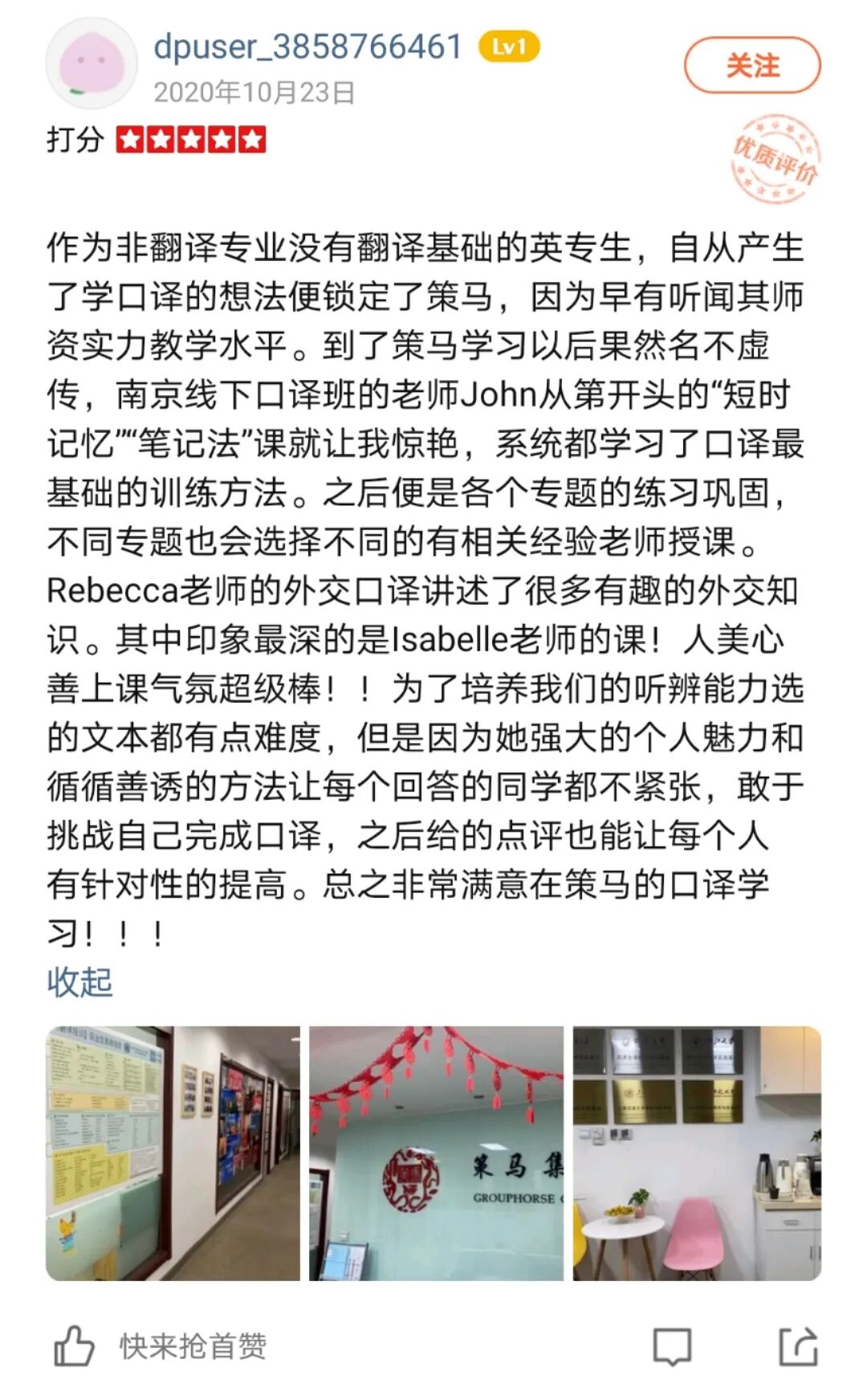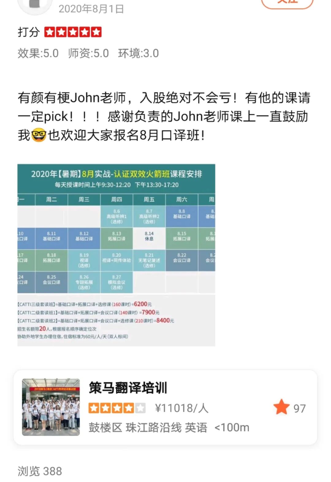进入“大众点评”搜索【策马翻译培训】