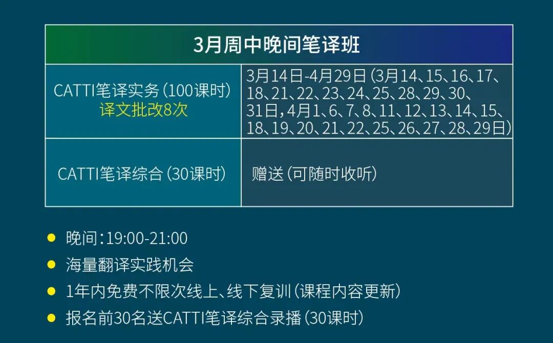 👉CATTI笔译周中晚间班