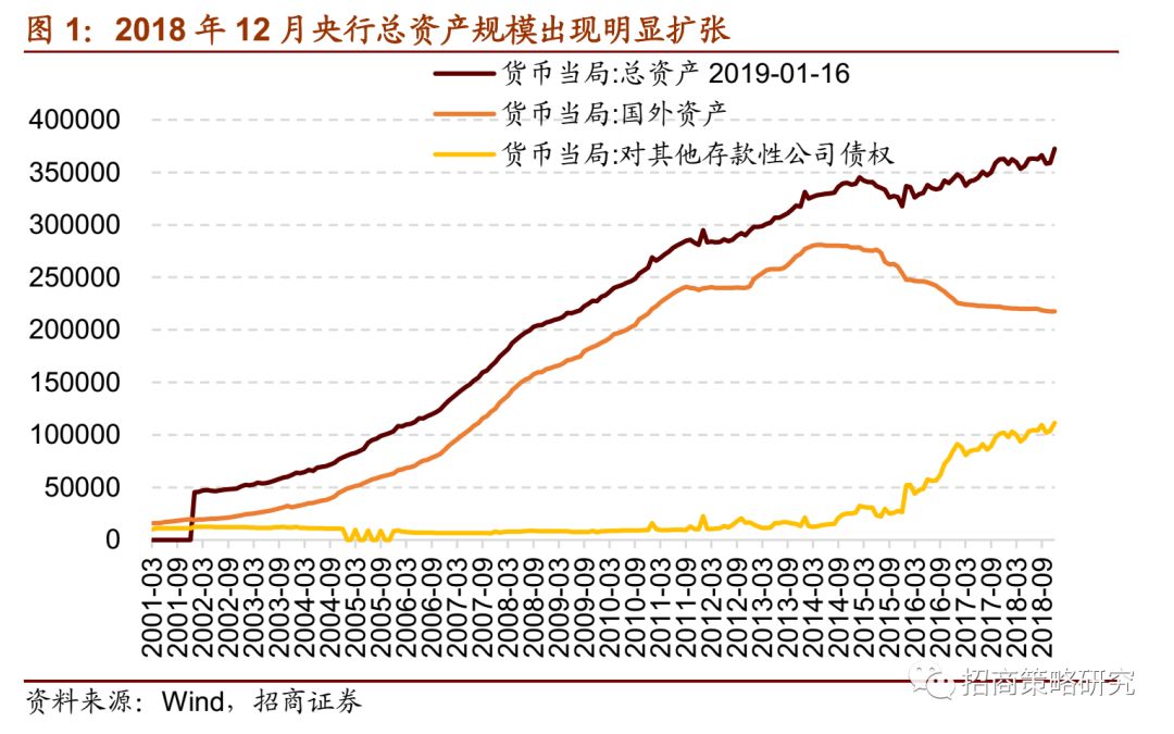 2018年12月,我们再度看到央行对其他存款性公司债权增速小幅扩张,同时,我们看到另外一个异动就是“其他资产”的大幅增加,央行总资产规模再度明显反弹。