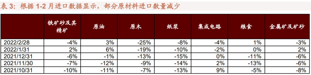 2021年,对于能耗双控目标的强调,导致高能耗行业生产扩张受到了能源的约束,而2021年四季度以来上游原材料成本持续上行,需求不振,今年以来焦炭、有色金属、粗钢、水泥等高能耗行业产量都转为负增长。