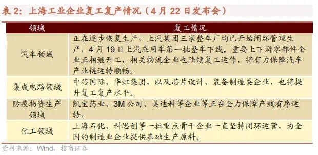 上海方面,根据 22 日上海召开的新闻发布会公布的情况来看,一周以来,666 家重点企业已有 70%实现了复工复产,企业的产能利用率也在不断提高。上汽、特斯拉等整车企业连续实现整车下线,相关零部件配套企业也陆续复工,汽车企业在产率、产能利用率有所提升。集成电路、化工骨干企业产能利用率保持在较高水平。