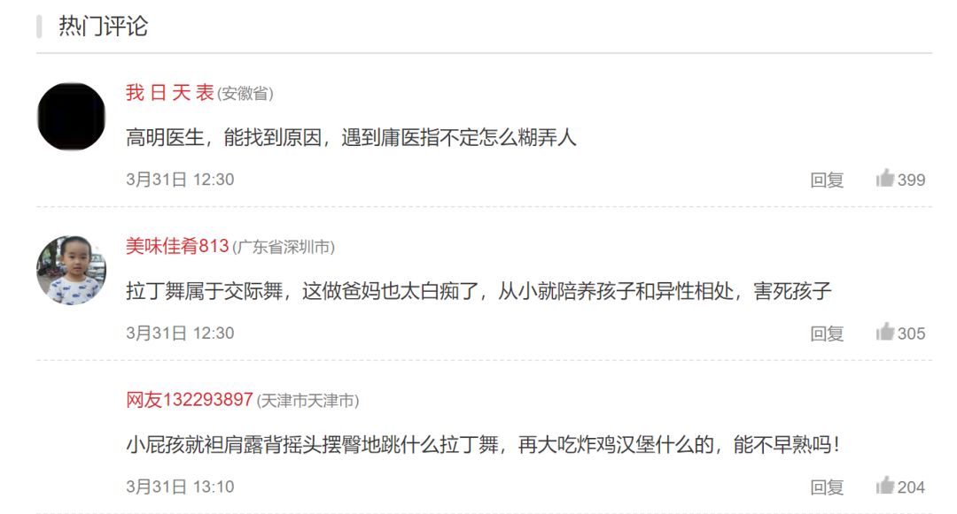 拉丁舞只是一种舞蹈,你可以喜欢它,也可以反感它,但是作为医生,无视自己的职业道德,无视现代医学的要求,就给一个9岁的孩子和他的父母扣上“因为跳舞而性早熟”的帽子,这是毫无医德的行为。