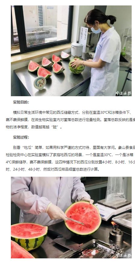 对了,前面提到的对已经有些腐坏的西瓜切掉表面一部分,吃里面的,象山食品检验部门也做了实验,结果是这样的: