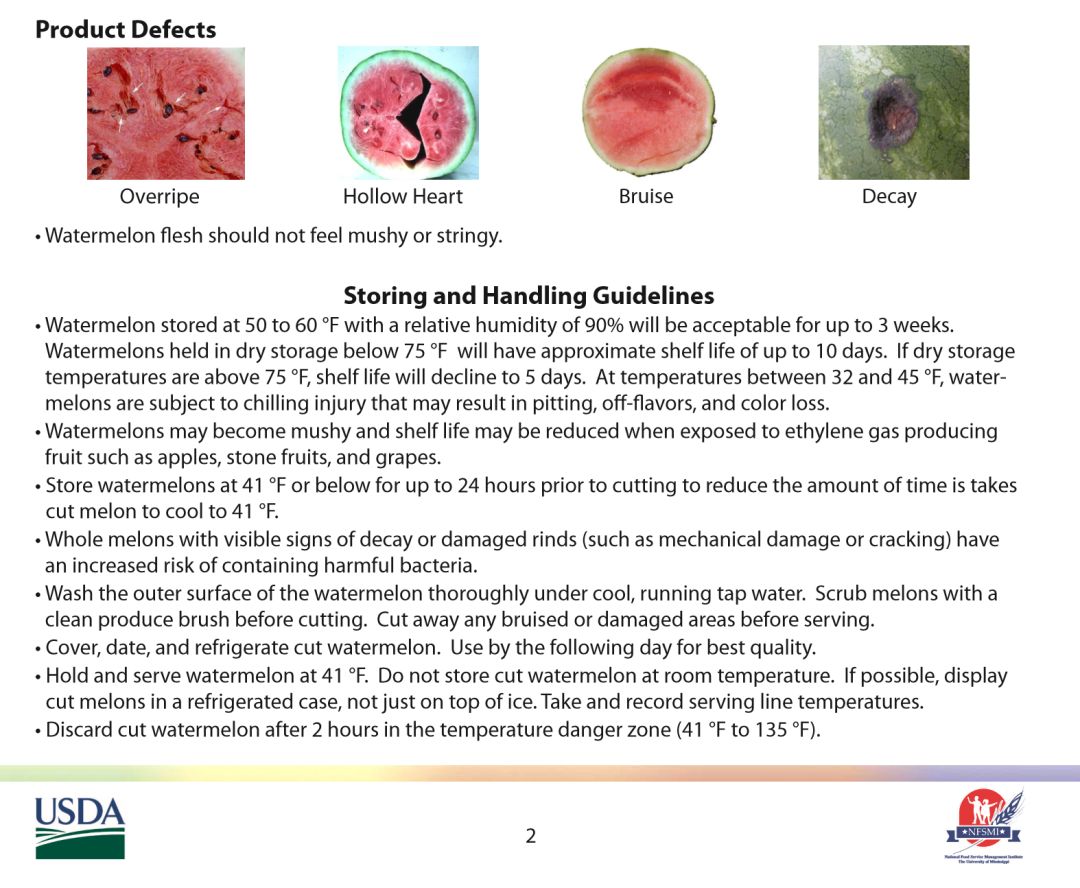 美国农业部USDA出过一个关于西瓜的储存指导。其中说明了这样一条:“不要在室温下储存切开的西瓜,如果切开的西瓜在5摄氏度(41华氏度)以上的环境存放超过2小时,需要丢弃。”