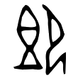 下面的“”是甲骨文中的“右”,画的就是一只右手,而上面的“