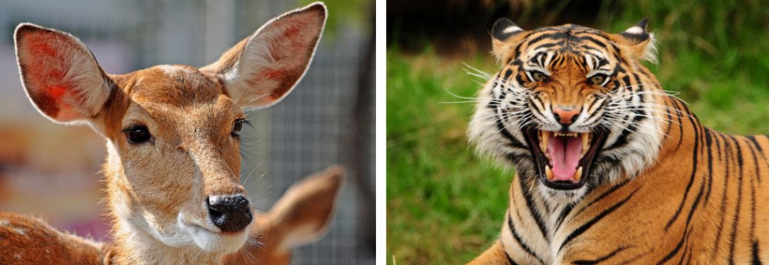 但通过两眼的视觉差可以更好的判断物体的距离感。例如草食动物的眼睛大都是长在两侧,各看一边视角不重叠,牺牲深度视觉获取了接近360度的视角,可以更容易发现捕食者。而狮虎豹这类的肉食捕食者的两眼都在前方,牺牲了视角但有更好的距离感,这样才不怕跳起来扑空。
