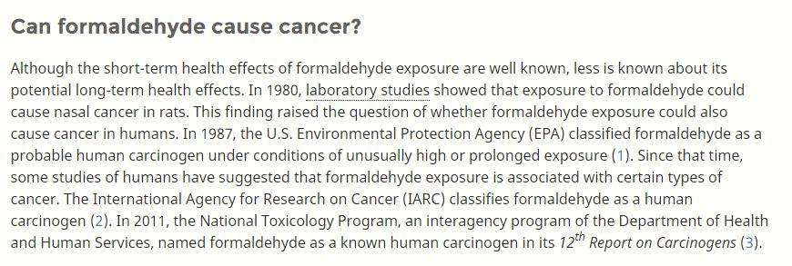 ▲美国癌症研究所NCI关于甲醛致癌性的回答