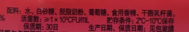 那乳酸菌饮料里面是多少呢,下面是某知名国产品牌的成分表,是0和0.8……