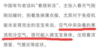网上总能看到建议家长要“春捂秋冻”的文章,但看一下内容,基本都是一些不知所谓的名词集锦,估计是用随机函数RAND()来混搭出来的: