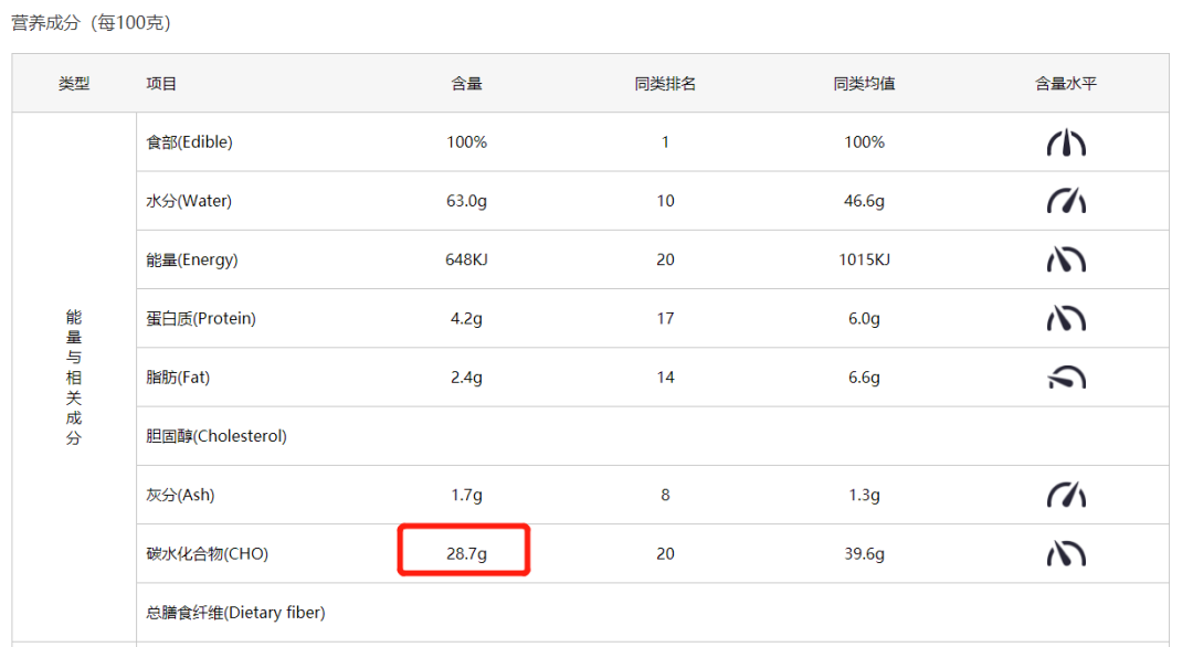 我们来看看白米饭中的碳水化合物,是25.9克/100克。