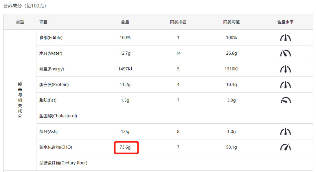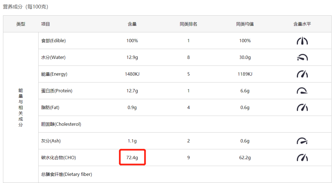 比如香大米的营养成分表↓,每100克中含约72.4克的碳水化合物。