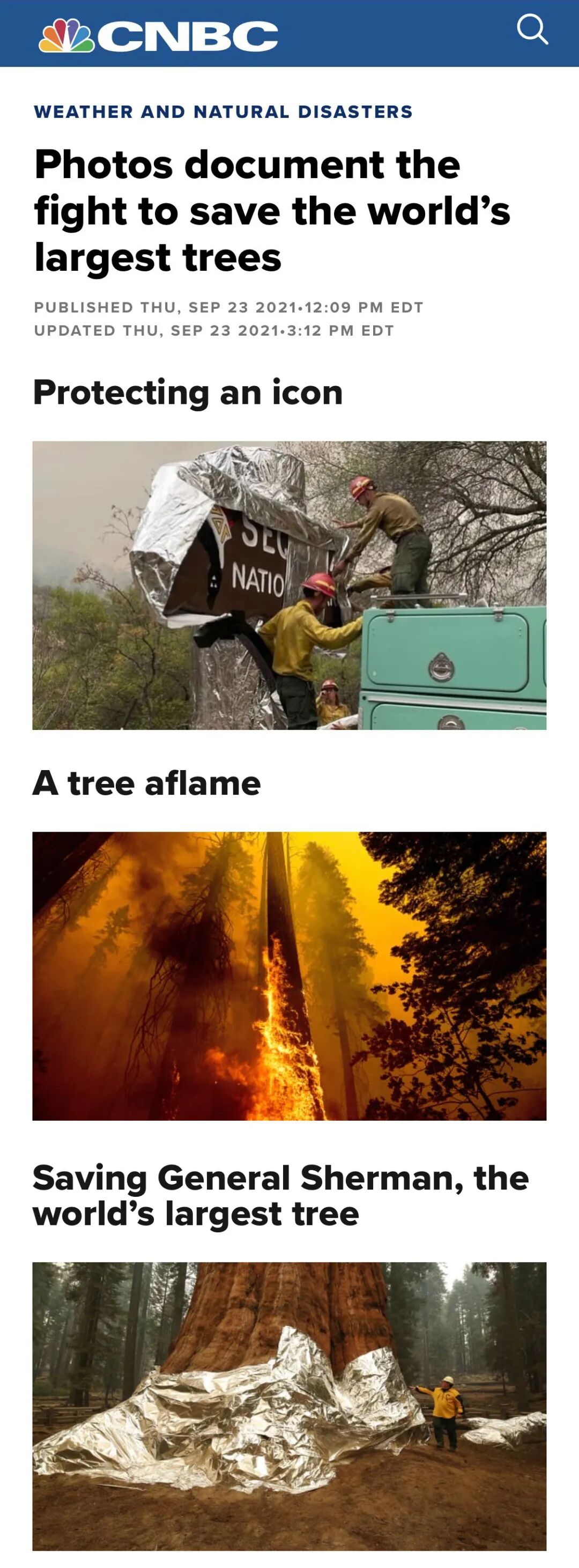 美国的山火持续燃烧了数月,加州的红杉国家公园的古树也受到了大火威胁,美国的消防员为红杉树盖上保护罩,免受火灾侵袭。