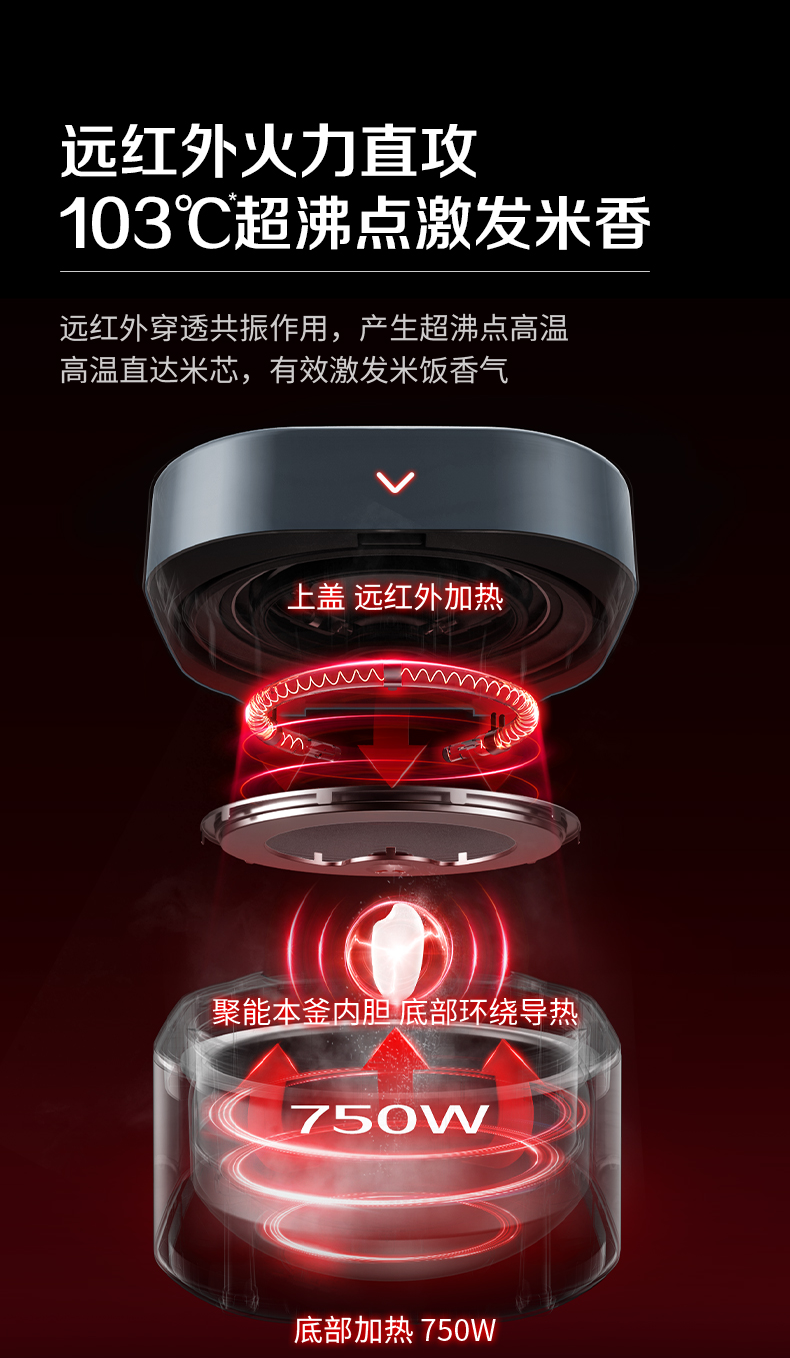 根据广告上的说明,这是因为远红外的穿透性很好,能产生超沸点高温,还可以高温直击米粒的芯部,加热米芯,这样米饭就更香了。