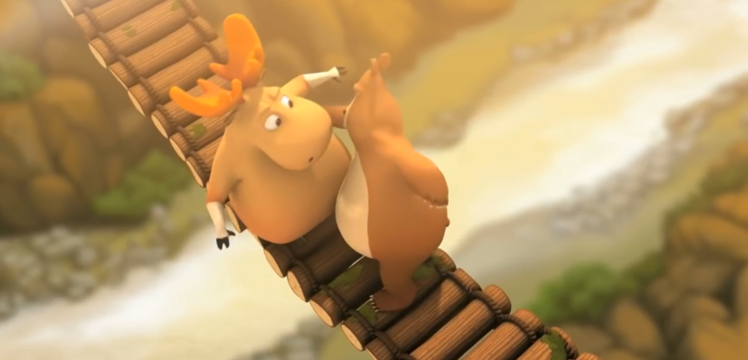 今天我们带来的是来自旧金山艺术大学的一部获奖的学生作品,动画的名字叫做《Bridge(桥)》。讲的是动物们要从一个吊桥上经过。最开始是一只大熊和一只胖胖的鹿,但是由于桥太窄了,他们堵在了桥上。