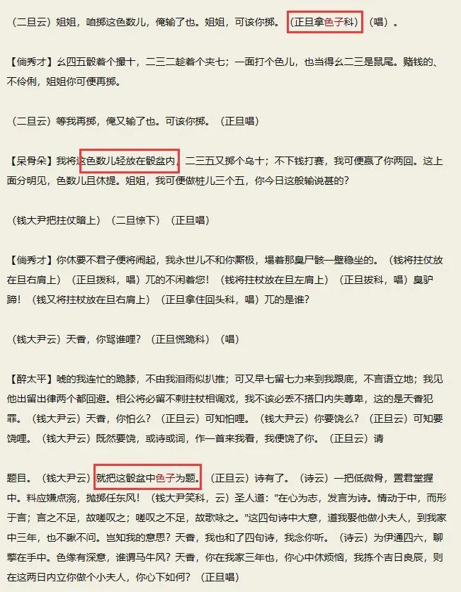 由于在历史上,“色”和“骰”一直都存在,比如元代关汉卿的杂剧《钱大尹智宠谢天香》中,用来扔的叫做“色子”、“色数”,而扔色子的盆,则叫做“骰盆”。