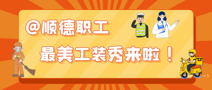 为营造“劳动最光荣、劳动最崇高、劳动最伟大、劳动最美丽”的良好氛围,展现顺德职工身着工装奋斗的美好瞬间,分享职工们在顺德奋斗的点点滴滴,现面向广大职工征集工装照,并组织全网投票,选出顺德职工心中的最美工装。
