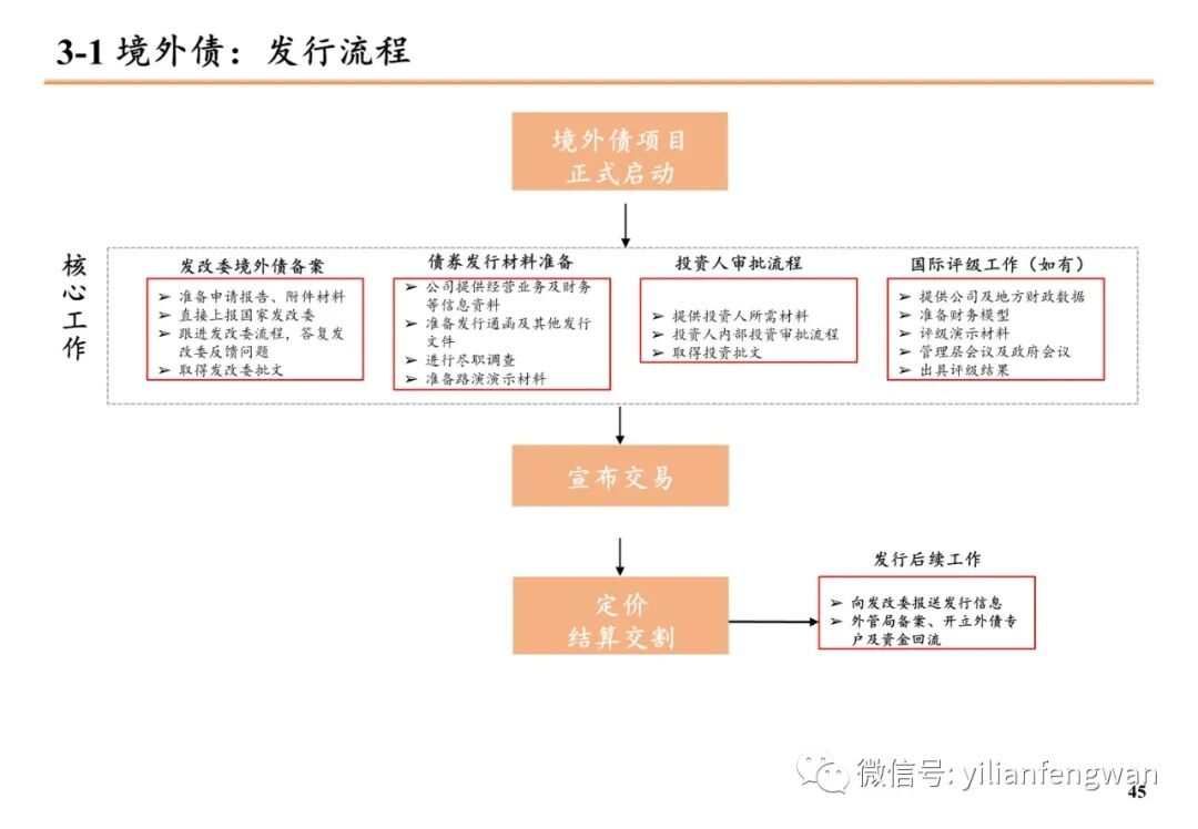 (一)根据最新的发改窗口指导意见,境外债政策收紧,主要包括: 1、代建与土地整理收入合并不能超过50%(最好不要接近50%),棚改安置房不算政府收入; 3、额度限制:发债规模不能超过净资产40%(包括累计余额); 5、项目收益在债券存续期覆盖利息,营运期覆盖总投资。 1-4 均为红线与是否有备用信用证增信无关,不能突破。 1、由于交易所公司债严控区县级平台,近期转向企业债申报数量开始增多; 2、对于一些资质弱的城投平台,即使不在平台名单内,如果营收里面来自政府收入超过50%,审批较难; 3、来自政府收入的定义,举例如政府代建,或者和政府关系比较紧密的基建收入等,没有说特别严谨的定义; 5、政府平台名单需要依据财政部给发改的版本,名单更新的时间并不固定。另外也不是企业自己清零隐性债务,当地财政出函确认,财政部就一定会调出名单的; 6、并没有说被拒申请的发行人,后面再申请会受影响,主要还是关注要看被拒的原因是什么,以及此前被拒的事项是否有解决; 7、在材料中应弱化地方政府对企业的隐形支持,地方政府债务率超100%发改委会关注;