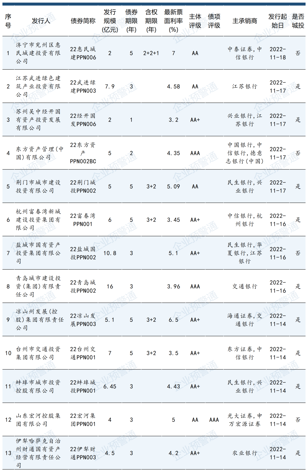 数据说明:以上数据内容来自企业预警通APP,统计日期截止2022年11月25日,仅供参考。最新数据以市场公开披露为准,如有数据疑问可在公众号后台或企业预警通APP在线客服处反馈。