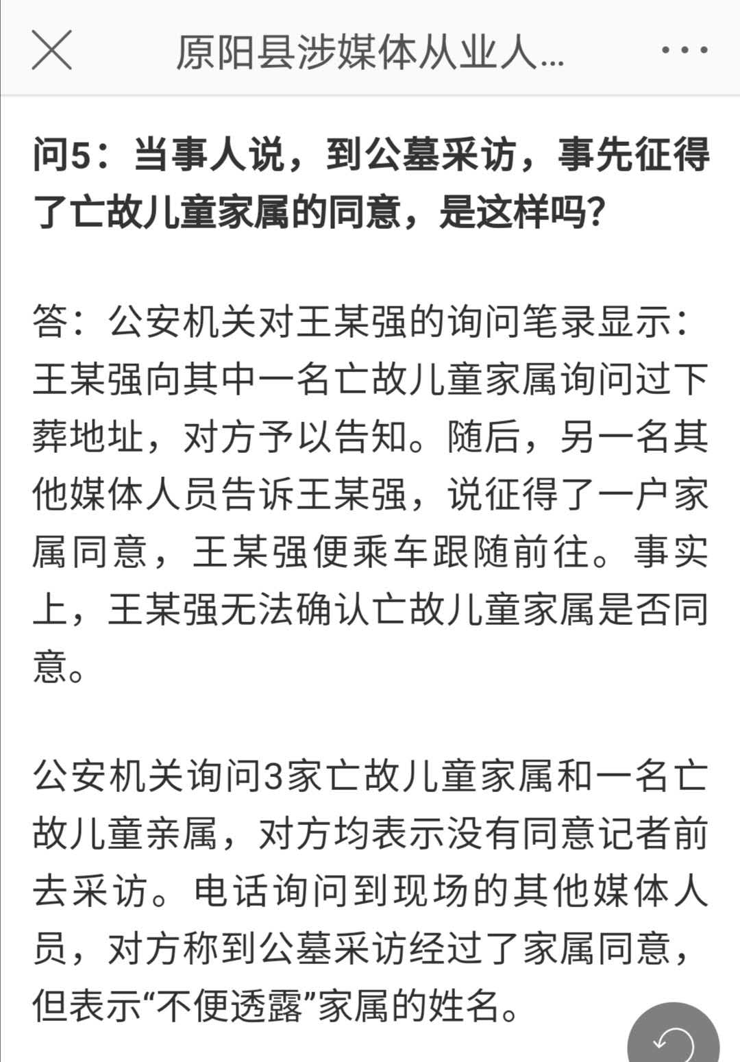 而以上两点,再加上另外一个颇为关键的事实——“公安机关询问3家亡故儿童家属和一名亡故儿童亲属,对方均表示没有同意记者前去采访。电话询问到现场的其他媒体人员,对方称到公墓采访经过了家属同意,但表示‘不便透露’家属的姓名”,共同验证了了我先前的判断:“记者”不该打,但确实欠打。