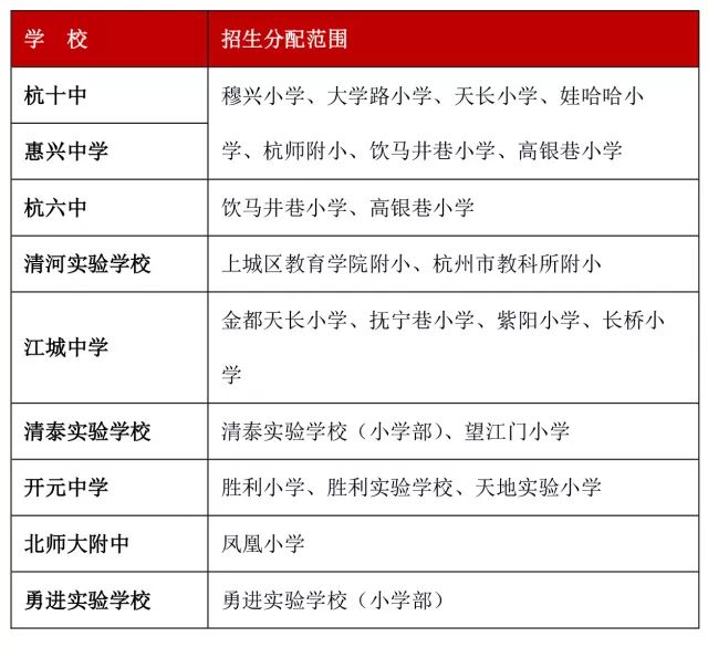 2018年杭州经济技术开发区公办初中对口衔接小学