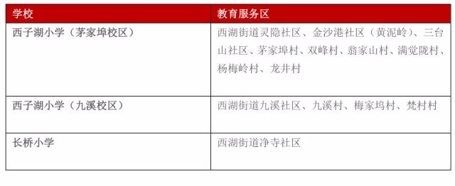 提醒:1.上述教育服务区的划分自公布之日起执行。以上仅作为2018年西湖区小学服务区的公布结果,以后均以当年公布的教育服务区为依据。2.上述教育服务区仅包含已经区教育行政部门备案明确的住宅。以后新建或改扩建的住宅,将另行确定其教育服务区,并以区教育行政部门公布的文件为准。3.上述教育服务区的划分今后会因规划布局、新建学校、招生容量等因素进行调整,请慎将现教育服务区作为购房依据。