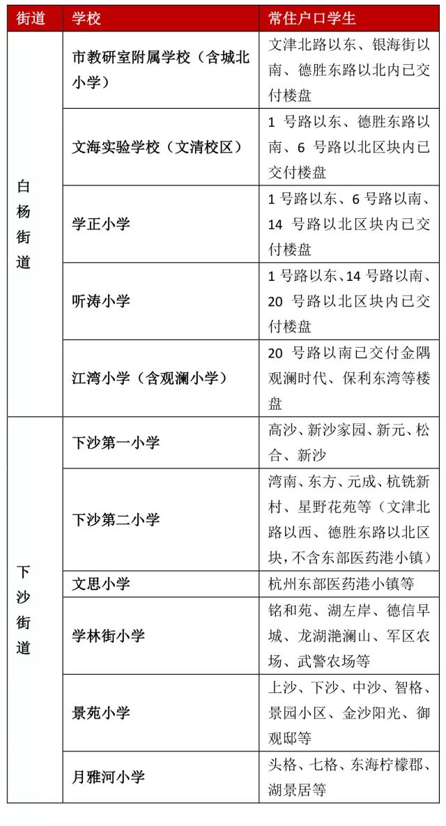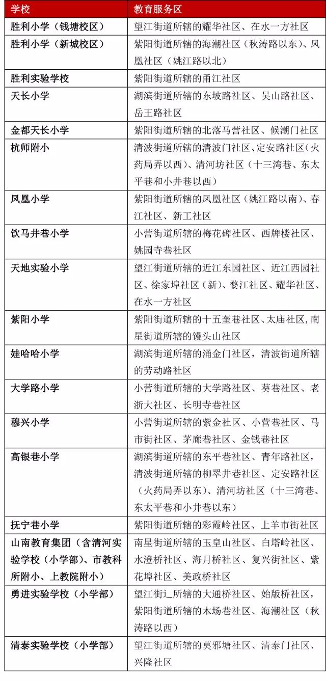 2018年杭州经济技术开发区公办小学教育服务区调整如下:
