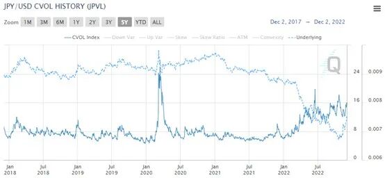 图9:芝商所的日元兑美元汇率走势及其期权隐含波动率