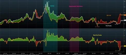从实际利率角度看,即便往回看几十年,鲍威尔当前的政策利率也仍是极度宽松的。从上图3也可以看出,80年代沃尔克的做法与鲍威尔截然相反,当时的实际利率非常高。