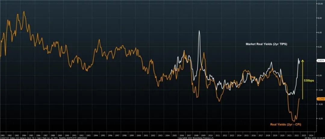 图4:美国实际利率(芝商所2年期利率期货-美国CPI)仍然低于历史平均水平