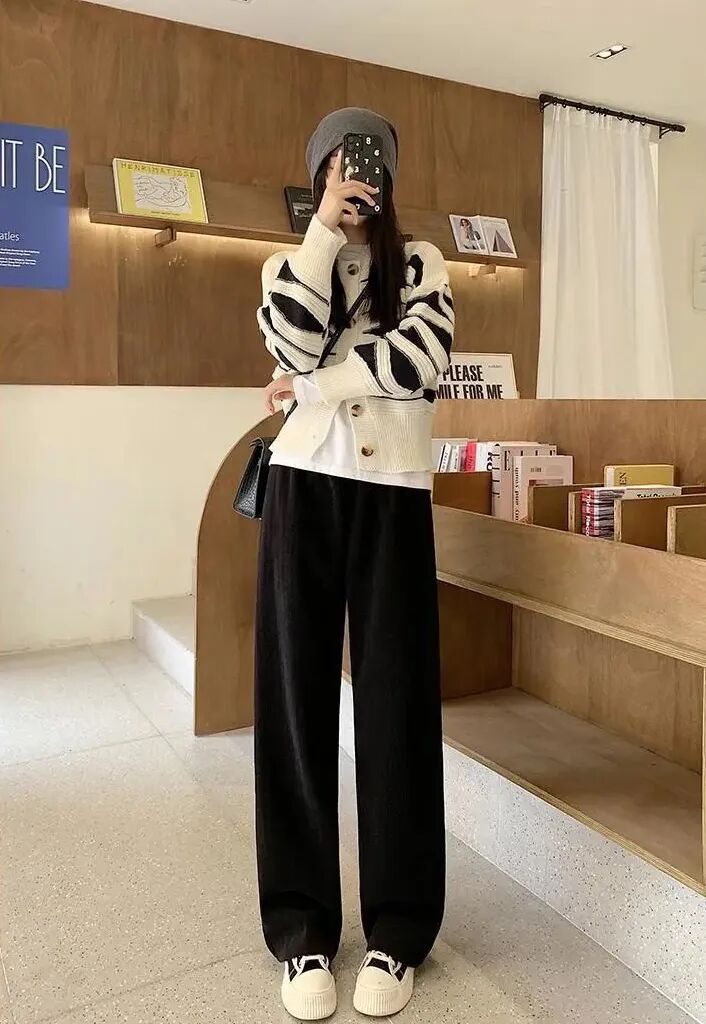 像我在秋冬就蛮喜欢穿阔腿裤的。
