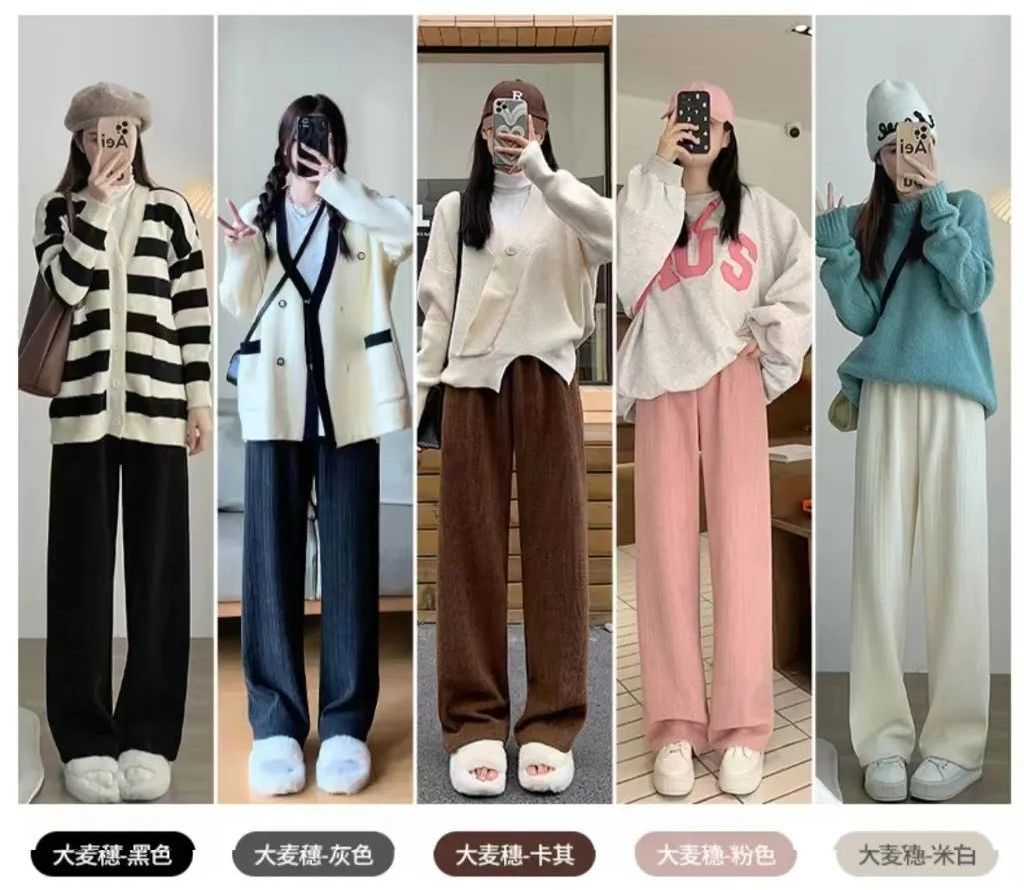 裤子穿不对,就会显得膀大腰圆的,或者是暴露了自身的腿型问题,整体的轮廓曲线不好看。这件阔腿裤的版型和长度,就是根据亚洲女生的身高和体型设计的。有小个子款、常规款、高个子款,三个款尺码裤长不一样,能适配到更多的身高和体型。这条裤子专治各种O型腿、X型腿、弯腿,还有胯宽等问题,穿上妥妥的被收在垂直的裤腿里,双腿变得笔直又修长。高腰设计,不动声色地拉长了腿部线条。穿上显高显瘦,秒变长腿美女。垂顺的版型能够在纵向的视觉上延伸,想要穿出大长腿,选对裤子就搞定啦。秋冬季本来是个浪漫的季节,但如果里三层、外三层的把自己裹成小熊,那就一点氛围感都没有了。厚实挺括的面料,有种羊毛质感!!几十块钱的手感绝对惊艳你!单凭质感就物超所值!不是普通的雪尼尔能比的!摸上去就很厚实,和市面上那种轻飘飘的真的不一样!每天早上起来穿裤子的时候,再也不会在伸进裤管的那瞬间,觉得冷冰冰了。内里加绒手感超级软糯!看的见厚实,防风又保暖,仿佛是厚厚的云朵包裹住身体。远看没什么特别,凑近就能看到麦穗纹路,简约不简单。比光板更有特点,满满的小清新,这个小设计就可以直接秒杀N多普通的雪尼尔裤。秋冬不怕冻,穿它出门,让你既能御寒,还能出街做个时髦精。姐妹们,马上就入冬了,不要等到被冷风吹傻了,才想起来要买裤子呀!颜色有5种可选:米白色,黑色,深灰色,粉色,卡其色。真的是巨温柔啊!穿上奶呼呼的,显得整个人白白净净,随心搭不出错。
