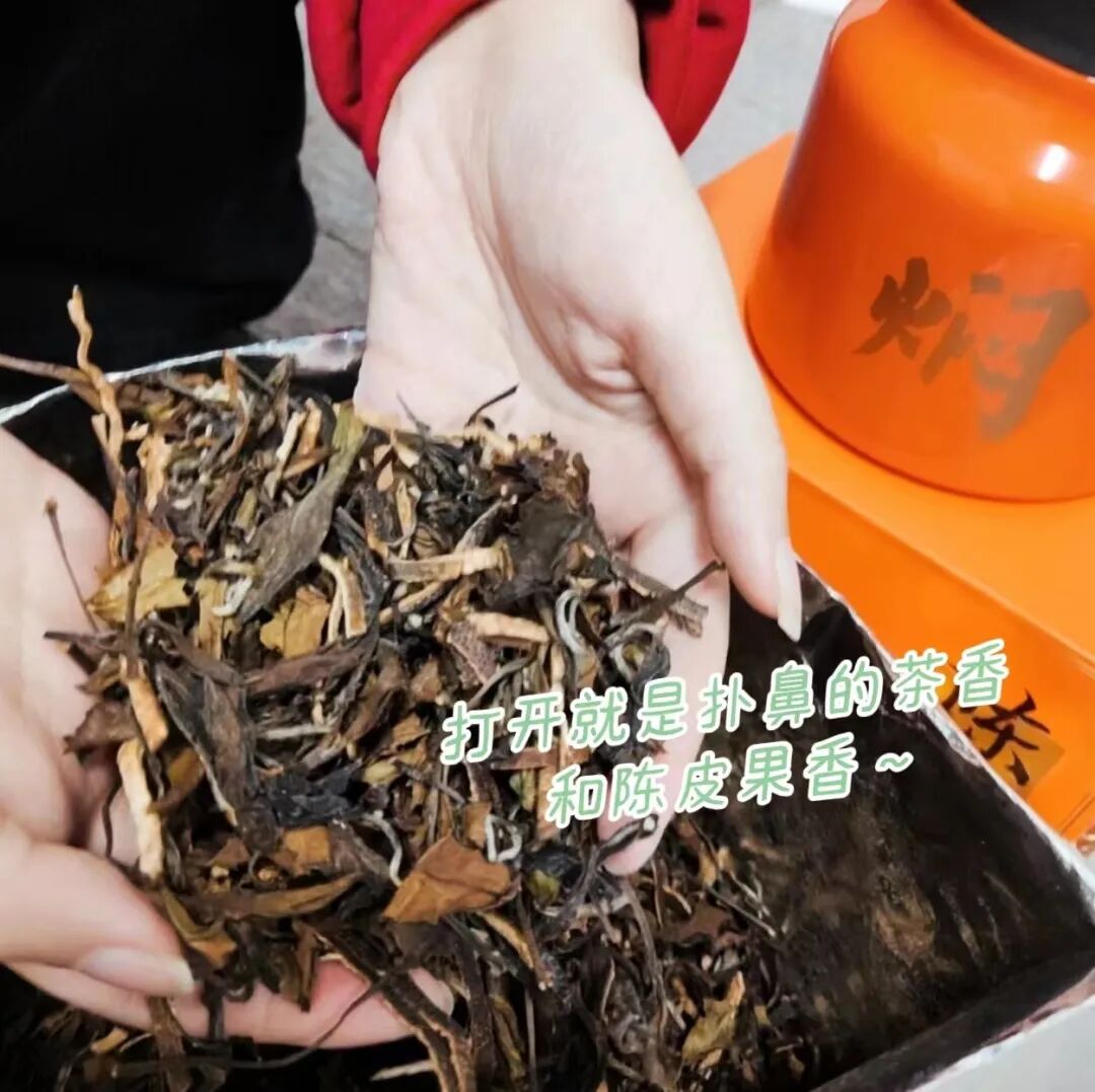 新会陈皮+福鼎白茶黄金比例搭配而成,茶汤甘醇稠滑,清香怡人~