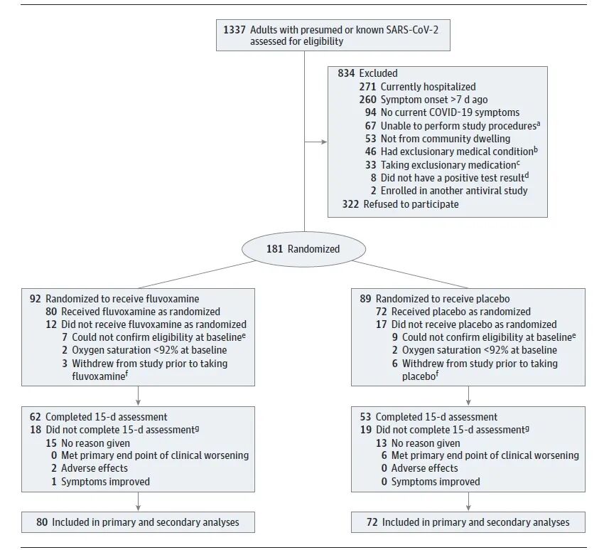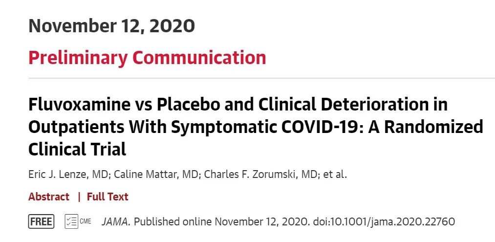 自11月9日世卫组织公布全球新冠确诊病例超5000万以来,全球每日新增病例仍居高不下,而瑞德西韦、羟氯喹等药物临床试验以失败告终无疑给人们的内心蒙上了一层阴影。既然目前没有特效药物治疗病情较重的住院患者,那么有没有药物能够阻止轻症患者的病情进展呢?11月12日,JAMA在线发表了圣路易斯华盛顿大学研究人员开展的临床试验的结果,评估了氟伏沙明在阻止轻症新冠患者病情恶化中的作用。