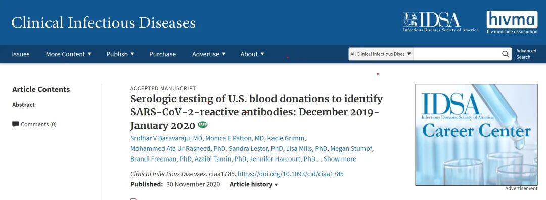 文章末尾指出,本研究凸显了回顾性筛查献血样本作为调查新冠病毒源头及流行传播轨迹的价值。美国既往曾多次使用回顾性筛查献血样本调查传染病暴发期间的人群发病率和流行率,最近一次是寨卡病毒流行期间。
