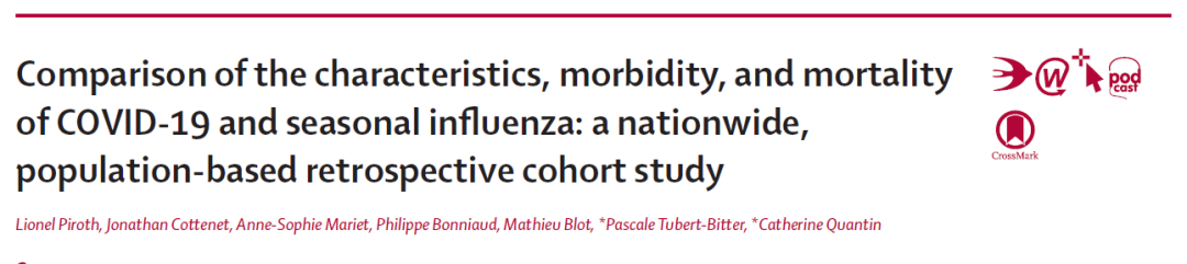 2020年12月17日Lancet Respir Med发表了法国Bourgogne-Franche-Comté大学的大型全国人口范围回顾性队列研究。文中比较了新冠肺炎与流感的致病特点。