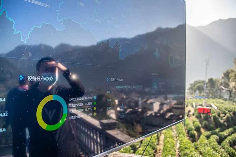 秭归县建东村白茶园示范基地的大数据指挥中心屏幕。伍志尊 摄