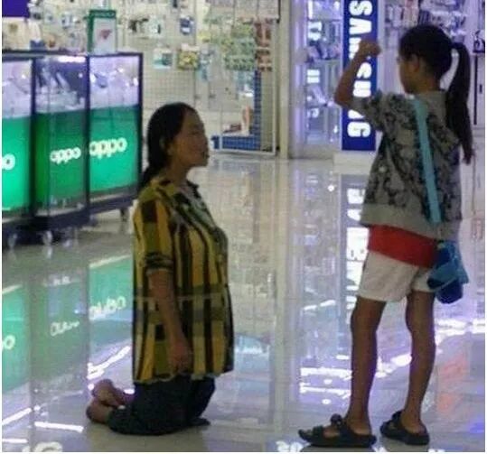 她实在是没钱给孩子买苹果手机了,只能给女儿下跪,求孩子不要买苹果手机。