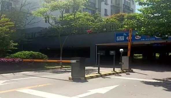 ▲停车入口为传统道闸无法显示剩余停车位及车位电子地图。