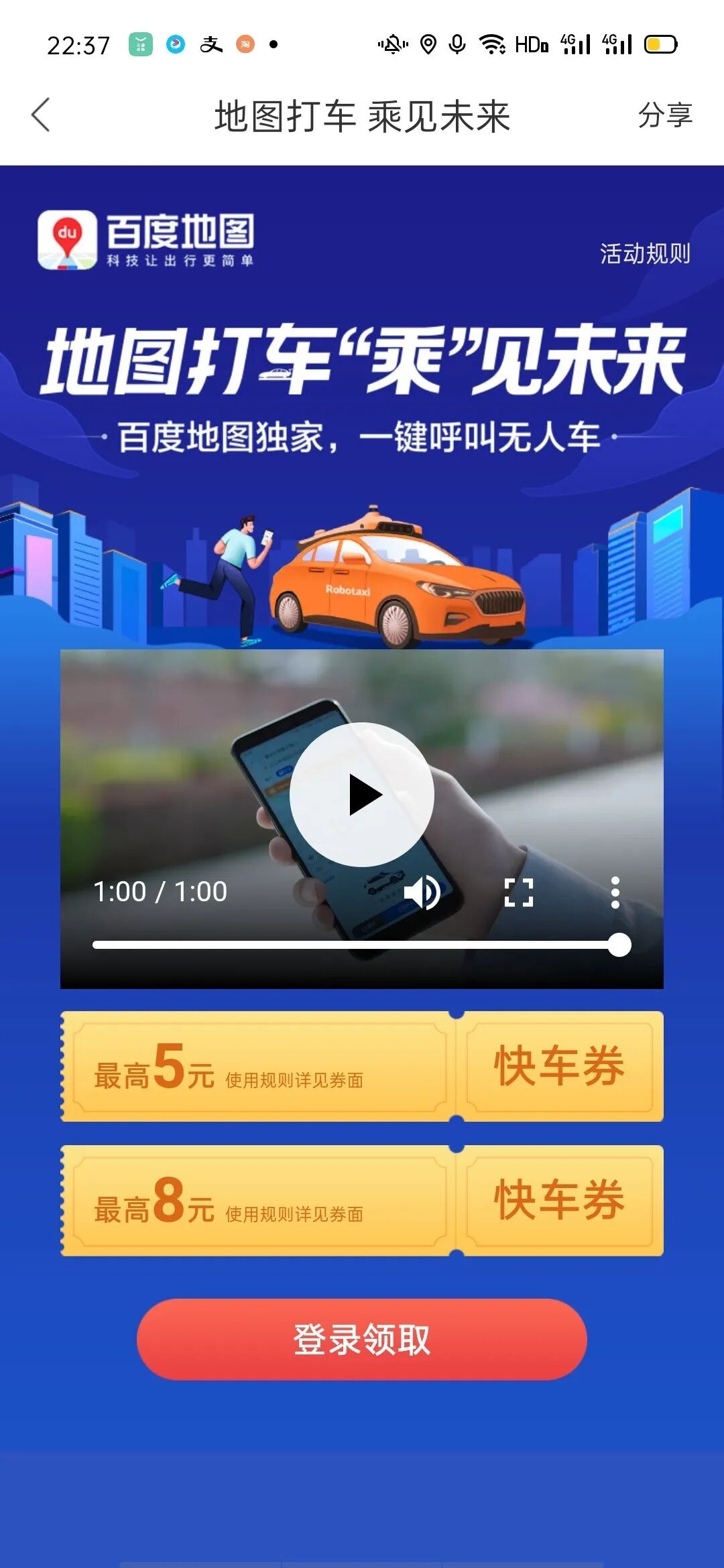 百度地图一键呼叫自动驾驶出租车
