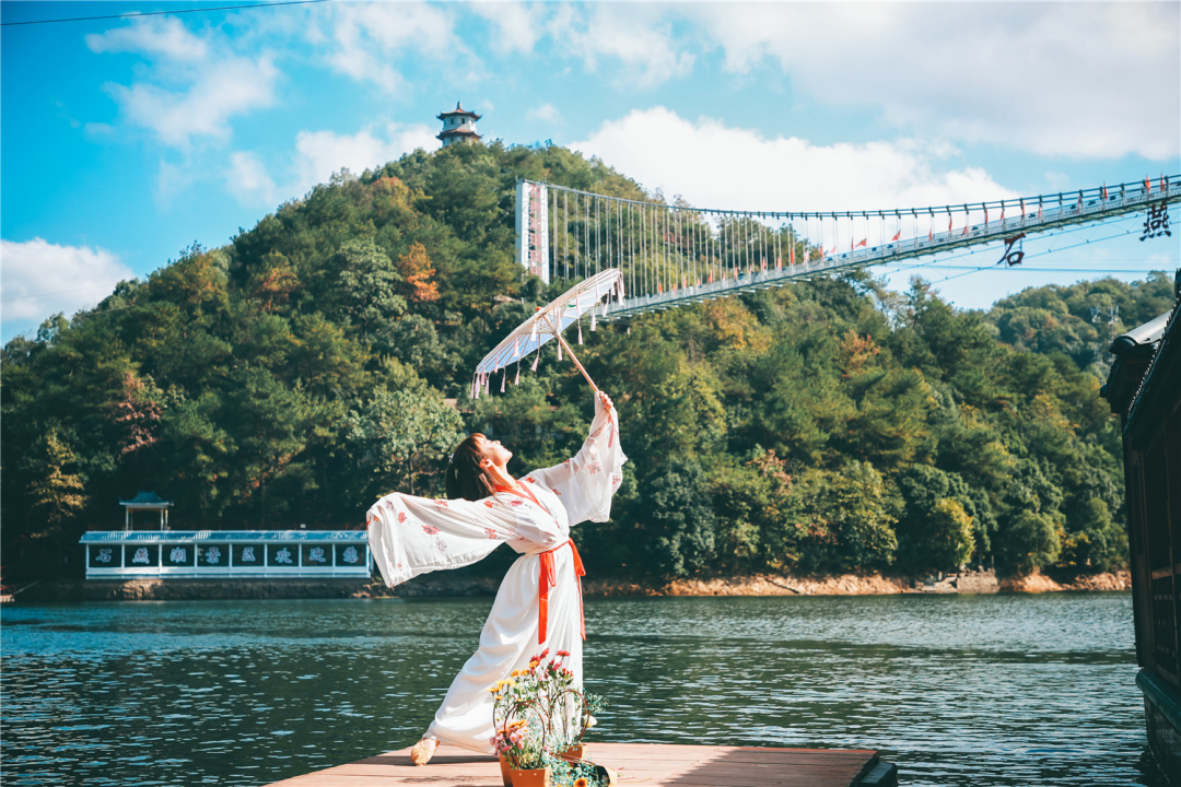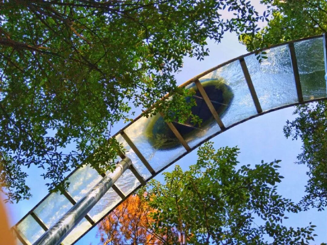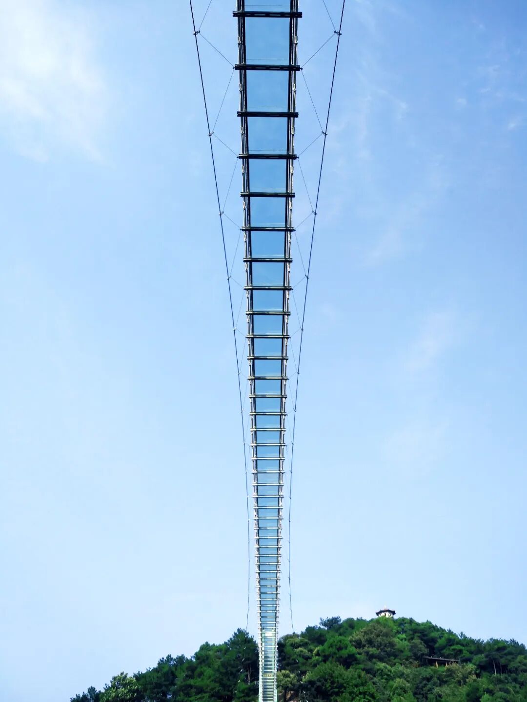 桥长200米,720°全透明,将碧水蓝天倒映脚下,远处青山葱翠一览无余。