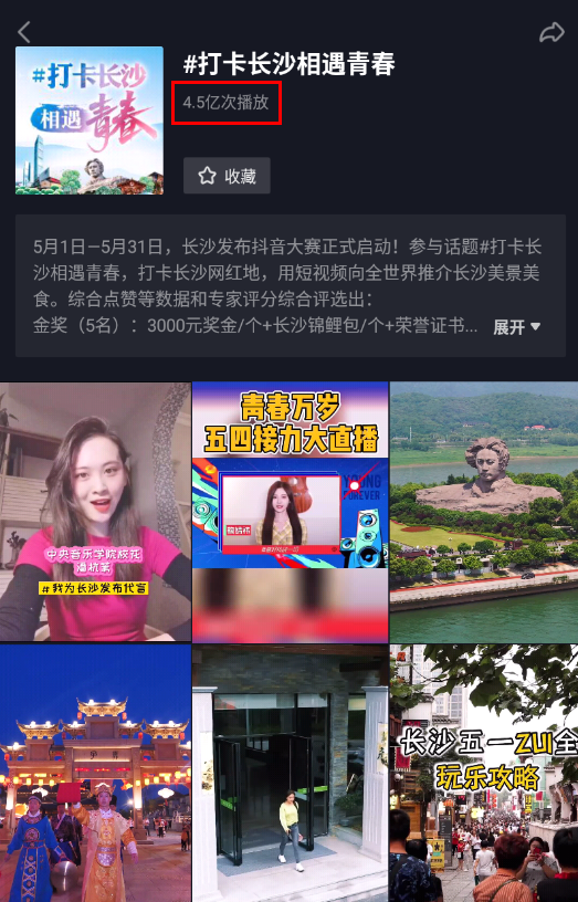 征集结束后,主办方组织评委会对参赛作品进行综合评议,抖音客观数值占比50%,评委评议分值占比50%,获奖结果公示后发放奖金、荣誉证书和长沙锦鲤包。