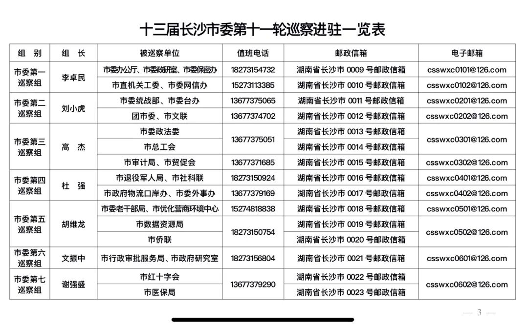 根据安排,市委巡察组将在被巡察单位工作1个月左右,巡察期间设专门值班电话、邮政信箱,受理信访时间截止到2020年8月初。巡察组主要受理反映被巡察单位领导班子及其成员、下一级党组织领导班子主要负责人和重要岗位领导干部问题的来信来电来访,重点是关于违反政治纪律、组织纪律、廉洁纪律、群众纪律、工作纪律和生活纪律等方面的举报和反映。其他不属于巡察受理范围的信访问题,将按规定由被巡察单位和有关部门认真处理。欢迎广大干部职工、群众向市委巡察组反映有关问题和情况。