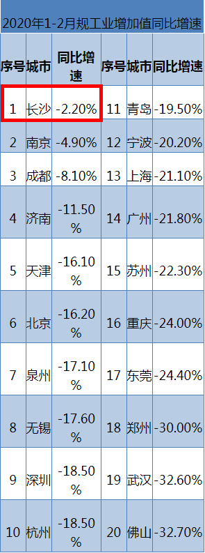 一切用实力说话,1-2月规模工业增加值长沙同比增速虽然有所下滑,但相比全国城市,下滑程度最小,足以见得长沙在复工复产上所作出的努力!